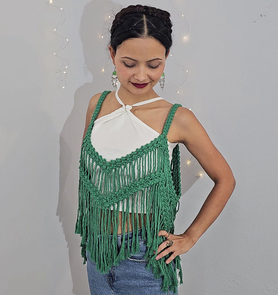 Esta colección nace del encuentro íntimo entre manos, hilos y presencia. Cada pieza fue creada como un acto de meditación activa, donde cada nudo guarda una intención y cada forma se revela en su propio tiempo.