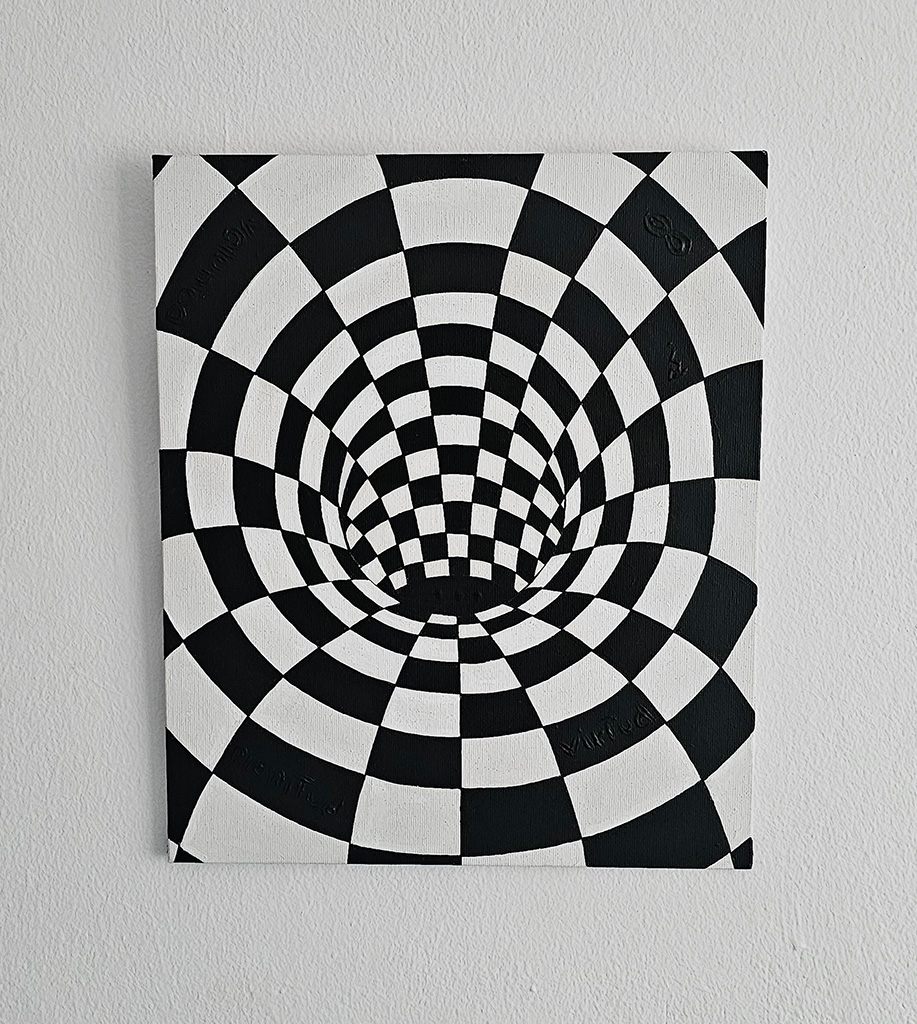 A través del lenguaje del Op Art, los «Rabbit Holes» de la consciencia exploran la ilusión de profundidad para recordarnos que la realidad siempre depende del ángulo desde el cual decidimos observar.