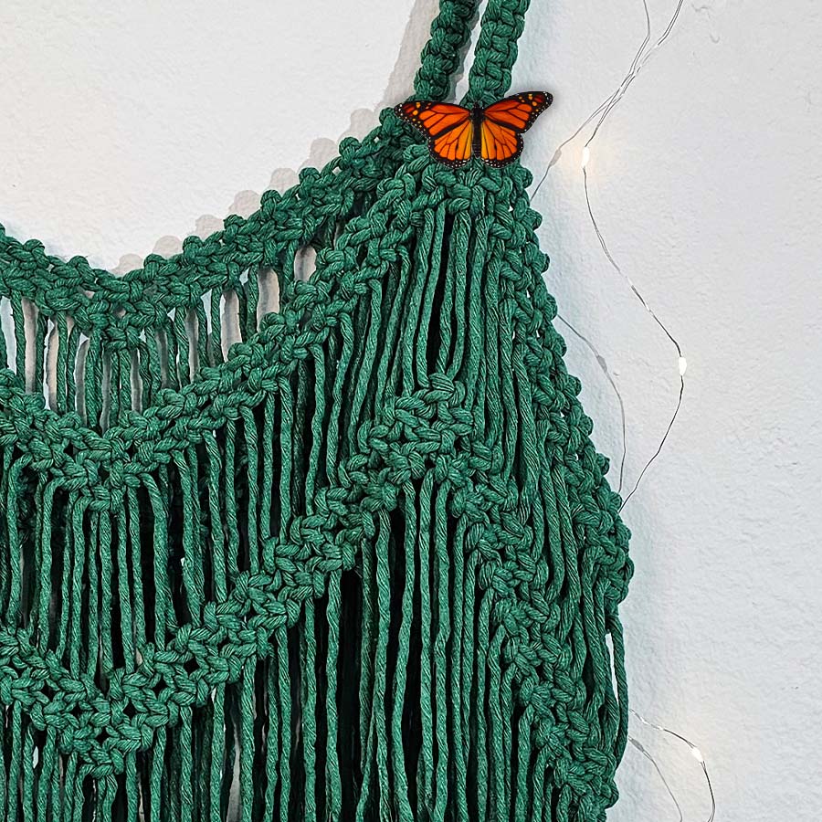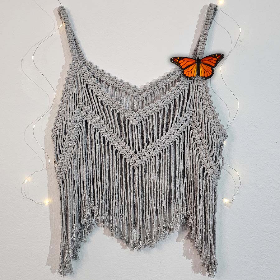 Esta primera colección esta compuesta por tres piezas únicas, que nacen del encuentro íntimo entre manos, hilos y presencia. Cada pieza fue creada como un acto de meditación activa, donde cada nudo guarda una intención y cada forma se revela en su propio tiempo. No son piezas pensadas para seguir tendencias, sino para acompañar a mujeres que desean habitar su cuerpo con consciencia, fuerza y belleza.