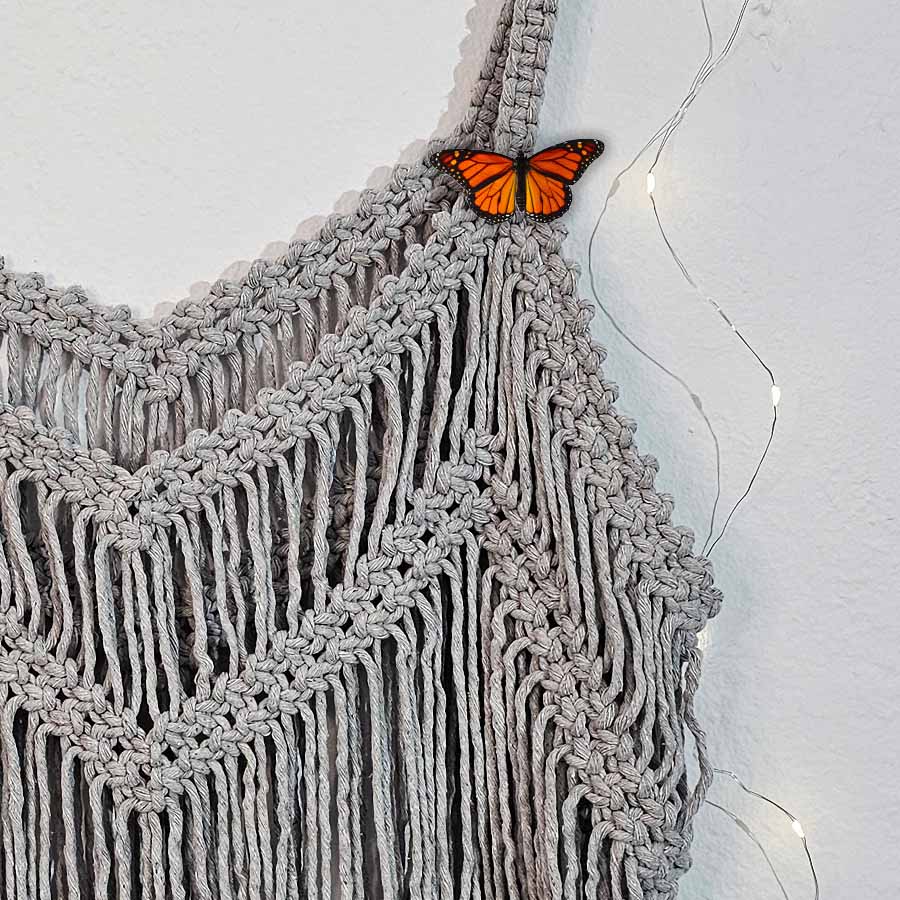 - Hecho a mano: Cada bolso cuenta con un bordado de mariposa único, realizado con técnicas experimentales de cuentas de vidrio o relieve en cordón.